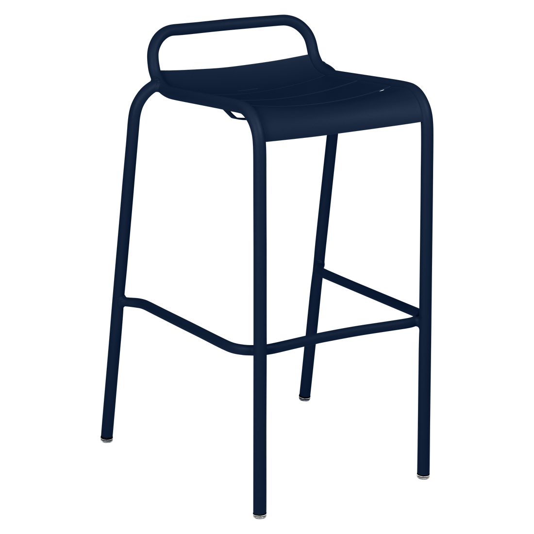 The Luxembourg bar stool is thoughtfully designed with a backrest that doubles as a. practical handle, making it easy to move and reposition. Its slim profile allows it to slide effortlessly under a bar or high table without getting in the way, making it ideal for small spaces. Crafted from durable, powder-coated aluminium, this stool is built for outdoor use while offering a wide seat, integrated footrest and excellent stability, all without compromising on comfort.